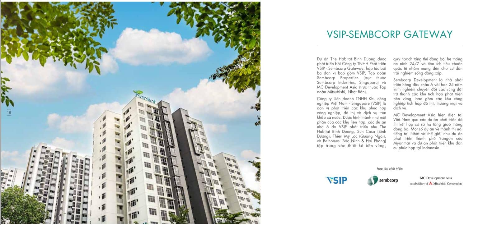 The Habitat Bình Dương được phát triển bởi Công ty TNHH Phát triển VSIP – Sembcorp Gateway, liên doanh chiến lược của ba thương hiệu uy tín hàng đầu trong lĩnh vực khu công nghiệp và bất động sản: